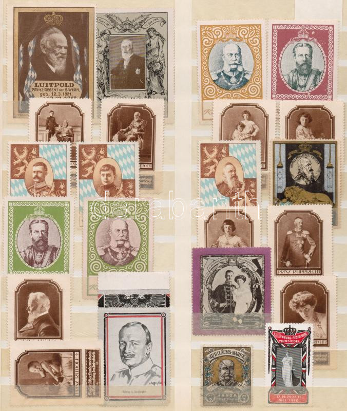 Német uralkodók 23 db levélzáró / German emperors poster stamps https://www.darabanth.com/hu/287-Gyorsarveres/287.0/Festmeny-mutargy-papirregiseg-egyeb/Parafilatelia~100014/Nemet-uralkodok-23-db-levelzaro-German-emperors-poster-stamps~II1508360