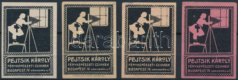 Leírás: Pejtsik Károly fényképészeti czikkek Budapest 4 db reklámbélyeg (RR!)