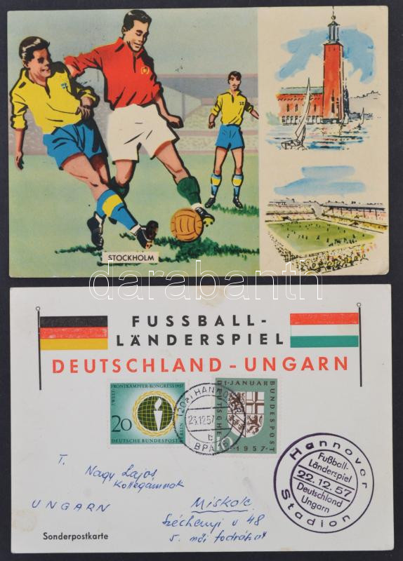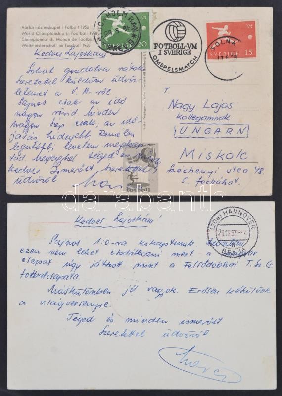 Leírás: 1957 Azonosítatlan magyar sportoló saját kézzel írt lapja a svédországi football világbajnokságról.