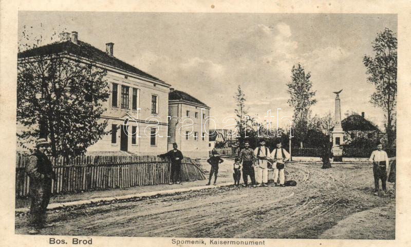 Leírás: Bosanski Brod, Spomenik / Kaisermonument / street view with monument