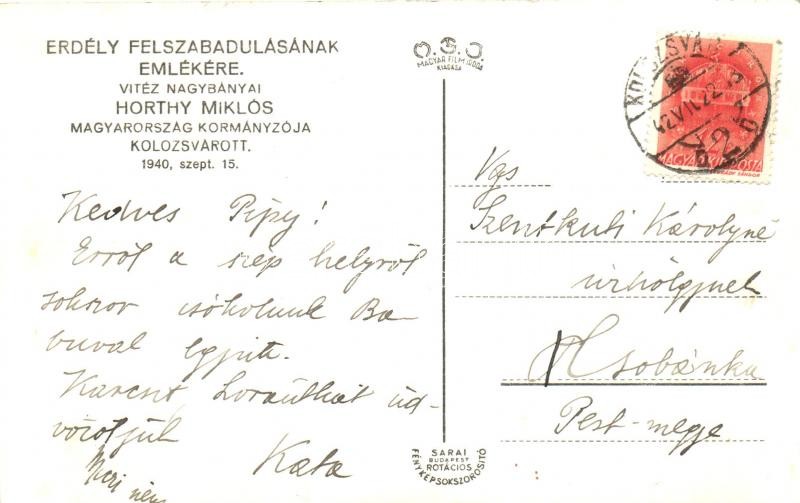 1940 Kolozsvár, bevonulás, Horthy Miklós, Purgly Magdolna, Teleki Pál,... https://www.darabanth.com/hu/287-Gyorsarveres/287.0/Kepeslapok/Erdely~200006/1940-Kolozsvar-bevonulas-Horthy-Miklos-Purgly-Magdolna-Teleki-Pal-Grof-Edelsheim-Gyulai-Il~II1274146