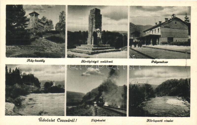 Leírás: Csucsa, Ciucea; Ady kastély, pályaudvar, Királyhágói emlékmű, Körös part, Márton Jenő felvétele / castle, railway station, monument, riverside