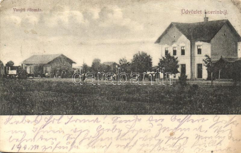 Leírás: Lovrin, Vasútállomás, Gilsdorf György kiadása / railway station (ragasztónyom / glue mark)
