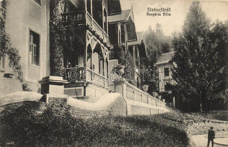 Stószfürdő, Kúpele Stós; Hungária Villa / villa https://www.darabanth.com/hu/287-Gyorsarveres/287.0/Kepeslapok/Felvidek~200007/Stoszfurdo-Kupele-Stos-Hungaria-Villa-villa~II1501904