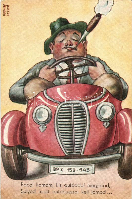 Leírás: Pacal komám, kis autóddal megjárod...! Férj humor / Husband, automobile, humour, NM 407/15. s: Kaszás Jámbor