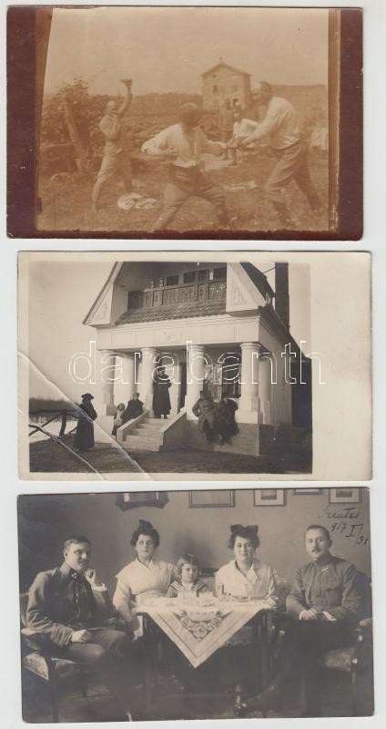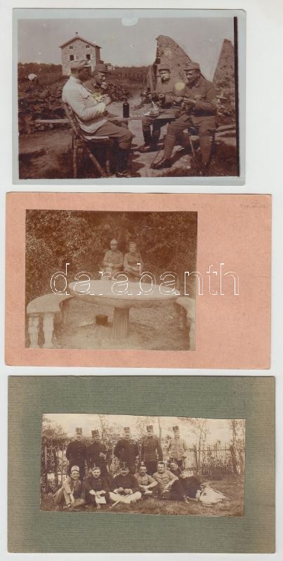 13 db RÉGI első világháborús katonai fotólap, K.u.K. katonák szánkózás közben, étteremben, csoportképek / 13 pre-1945 WWI military photo postcards, K.u.K. soldiers sledging and eating in a restaurant, group photos