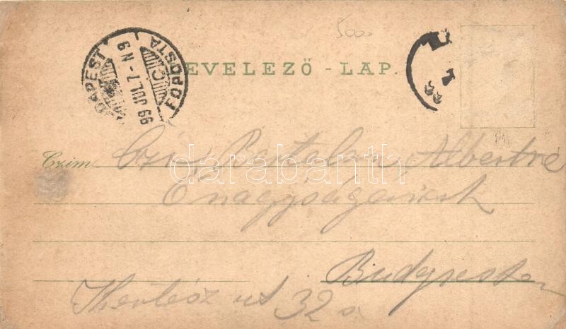 Leírás: 1899 Kiscell, Templom, apátság, piac, kórház, Gáyer üzlete, Schwidernoch Károly floral litho (felületi sérülés / surface damage)