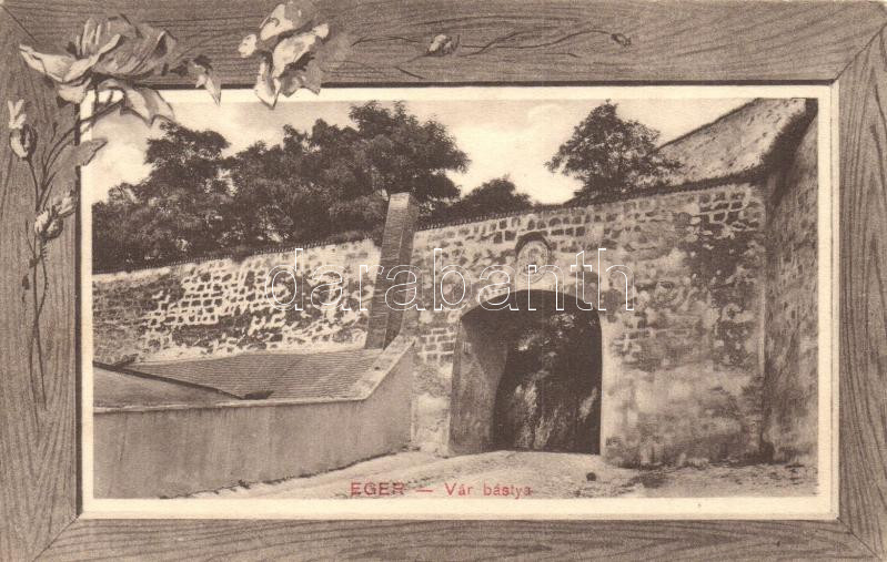 Leírás: Eger, Vár bástya, díszes virágos keret, floral (EK)
