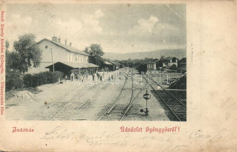Leírás: Gyöngyös, indóház, vasútállomás, Bendl Károly kiadása (EB)
