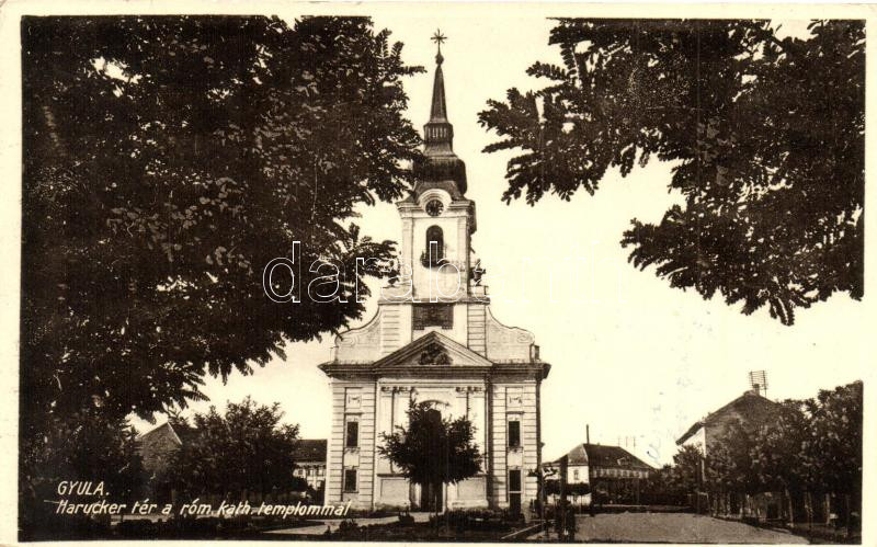 Gyula, Harucker tér, Római katolikus templom, Scheibert Lipót kiadása ... https://www.darabanth.com/hu/287-Gyorsarveres/287.0/Kepeslapok/Magyarorszag~200005/Gyula-Harucker-ter-Romai-katolikus-templom-Scheibert-Lipot-kiadasa-EK~II1505658