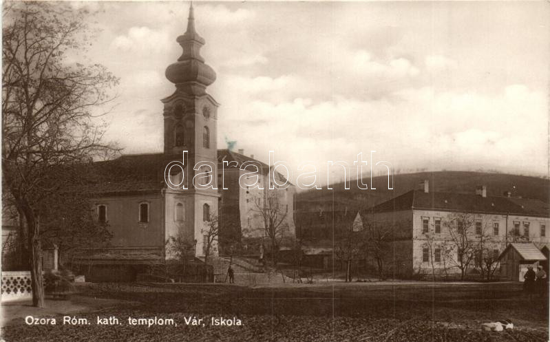 Ozora, Római katolikus templom, vár, iskola, Hamar kiadása https://www.darabanth.com/hu/287-Gyorsarveres/287.0/Kepeslapok/Magyarorszag~200005/Ozora-Romai-katolikus-templom-var-iskola-Hamar-kiadasa~II1509088