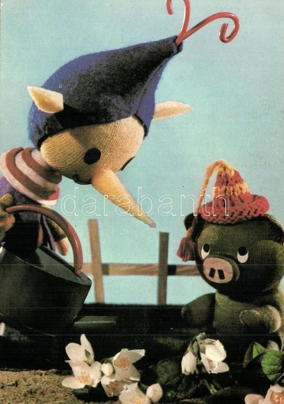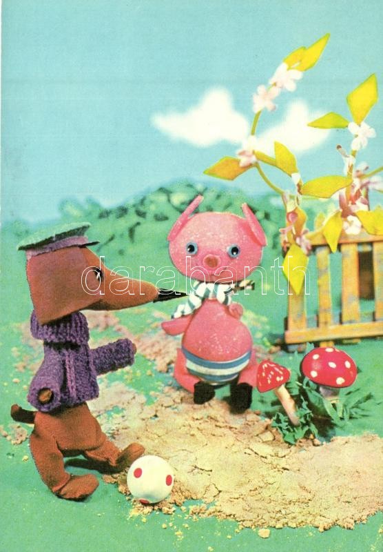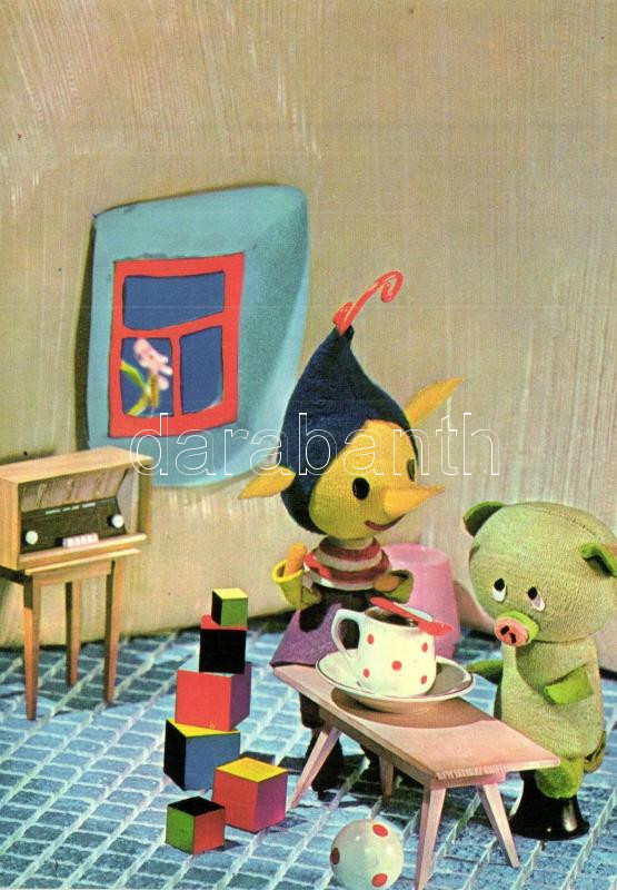 4 db MODERN motívumos képeslap, Mazsola és Tádé magyar televíziós bábfilmsorozat, esti mese / 4 MODERN motive cards, Mazsola & Tádé Hungarian puppet animated film, bedtime story