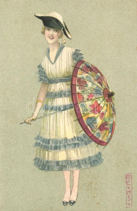 Girl; Italian art postcard, U.R.S. di Milano 925-2. s: Colombo https://www.darabanth.com/hu/287-Gyorsarveres/287.0/Kepeslapok/Muveszlapok~200068/Girl-Italian-art-postcard-URS-di-Milano-925-2-s-Colombo~II942230