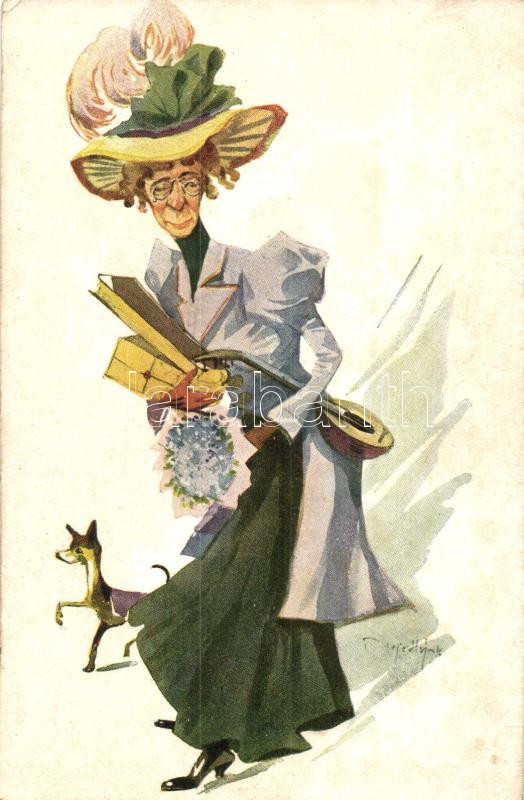 Leírás: Lady with dog, Monopol 245/3., artist signed