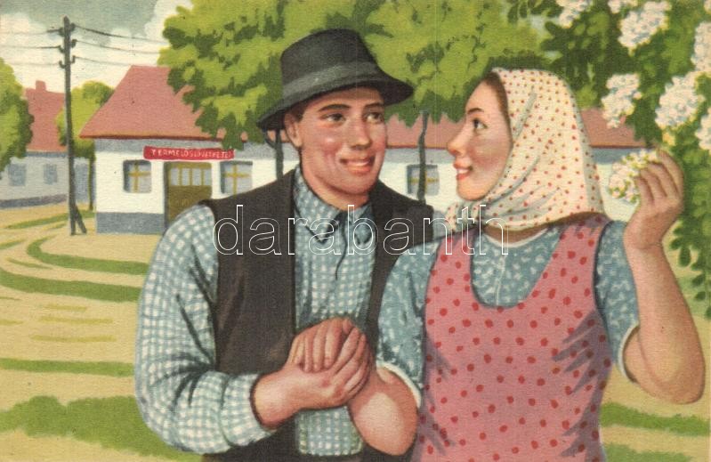 2 db MODERN magyar szocialista propagandalap; termelőszövetkezet, Kommunista falujárók a Munkás Paraszt Szövetség építéséért / 2 modern Hungarian socialist propagandacard
