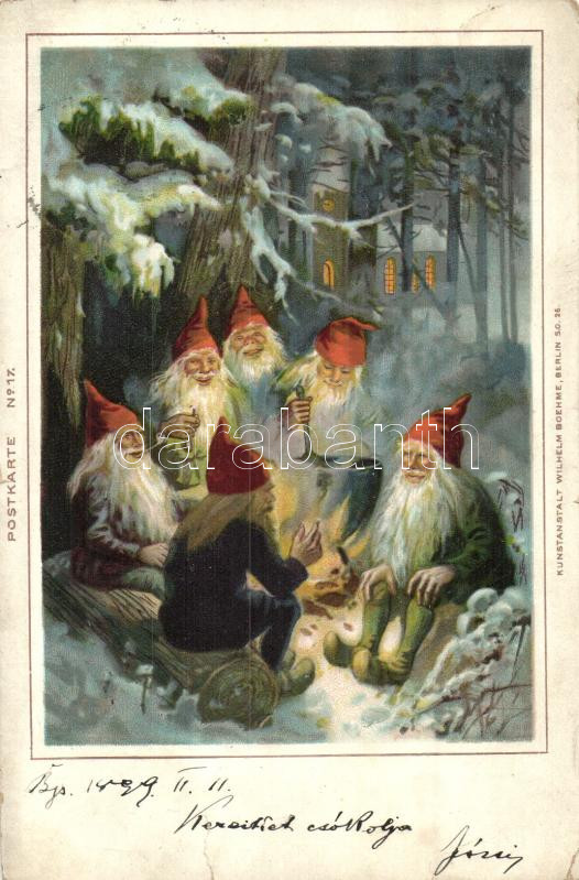 1899 Dwarves cooking by a campfire, Kunstanstalt Wilhelm Boehme No. 17... https://www.darabanth.com/hu/287-Gyorsarveres/287.0/Kepeslapok/Torpe~200075/1899-Dwarves-cooking-by-a-campfire-Kunstanstalt-Wilhelm-Boehme-No-17-litho-b~II1504600