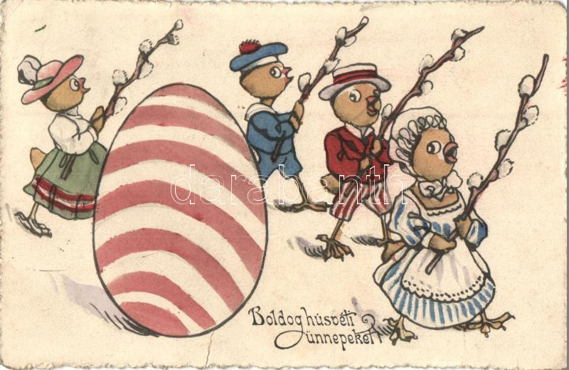 'Boldog húsvéti ünnepeket' / Easter greeting postcard, chick... https://www.darabanth.com/hu/287-Gyorsarveres/287.0/Kepeslapok/Udvozlolapok-Unnepek~200077/Boldog-husveti-unnepeket-Easter-greeting-postcard-chickens-B-K-W-I-1127-fa~II1472647