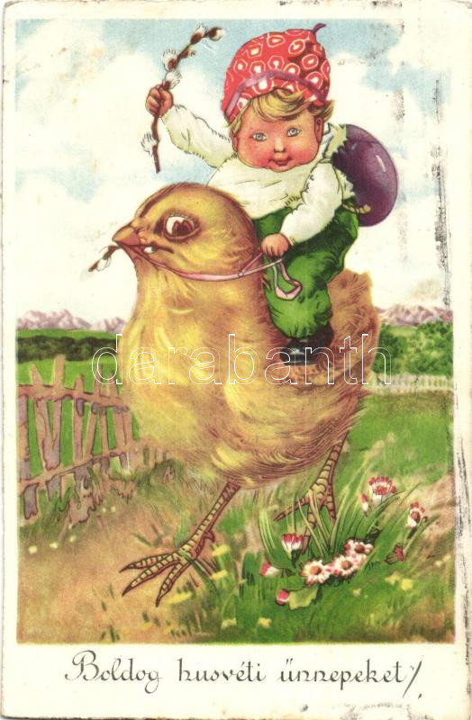'Boldog húsvéti ünnepeket' / Easter greeting postcard, chick... https://www.darabanth.com/hu/287-Gyorsarveres/287.0/Kepeslapok/Udvozlolapok-Unnepek~200077/Boldog-husveti-unnepeket-Easter-greeting-postcard-chickens-HACO-No-6870-EK~II1472654