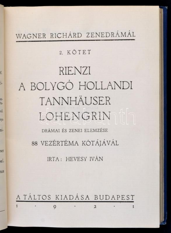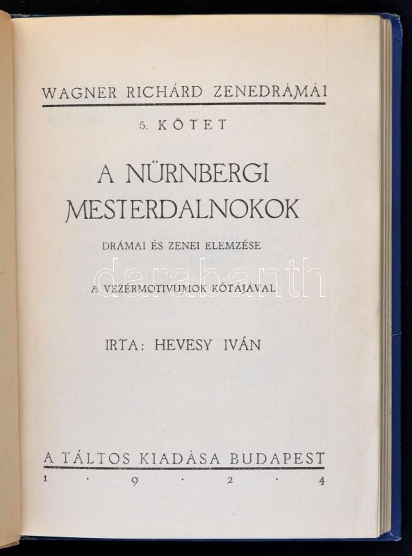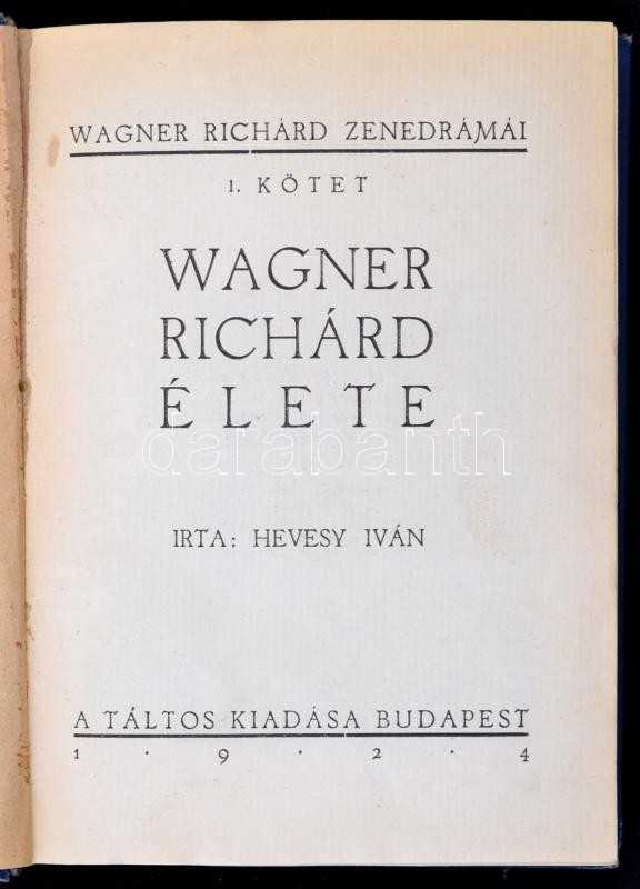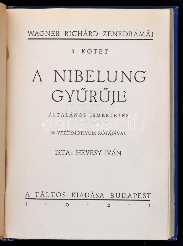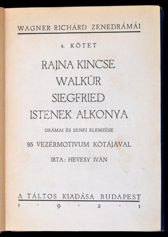 Hevesy Iván:Wagner Zenedrámái I-VI. Bp., 1921-1924, Táltos Kiadás. Kia... https://www.darabanth.com/hu/287-Gyorsarveres/287.0/Konyvek/Konyvek-Epiteszet-muveszet~100033/Hevesy-IvanWagner-Zenedramai-I-VI-Bp-1921-1924-Taltos-Kiadas-Kiadoi-aranyozott-egeszva~II1504679