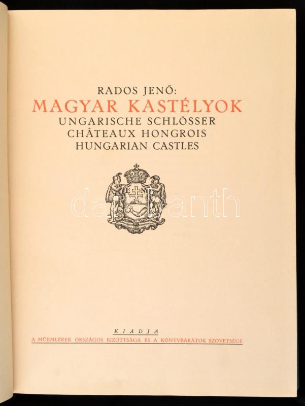 Rados Jenő: Magyar kastélyok. Ungarische Schlösser. Châteaux hongrois.... https://www.darabanth.com/hu/287-Gyorsarveres/287.0/Konyvek/Konyvek-Epiteszet-muveszet~100033/Rados-Jeno-Magyar-kastelyok-Ungarische-Schlosser-ChC3A2teaux-hongrois-Hungarian-Castles-Bp-1~II1505458