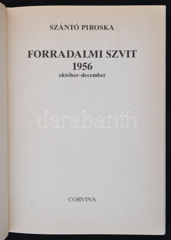 Szántó Piroska: Forradalmi Szvit 1956 október-december. Bp., é.n. (198... https://www.darabanth.com/hu/287-Gyorsarveres/287.0/Konyvek/Konyvek-Epiteszet-muveszet~100033/Szanto-Piroska-Forradalmi-Szvit-1956-oktober-december-Bp-en-1984-Corvina-27-pplus35-t-K~II1504558