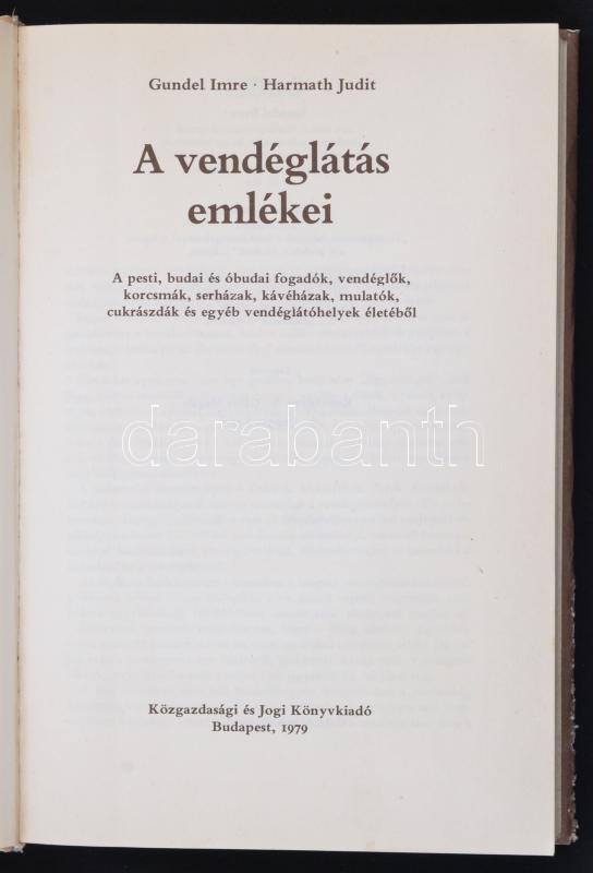 Gundel Imre, Harmath Judit: A vendéglátás emlékei. Bp., 1979, Közgazdasági és Jogi Könyvkiadó. Kiadói egészvászonkötésben, régi üzletreklámokkal gazdagon dÃszÃtett papÃr védÅ‘borÃtóval.