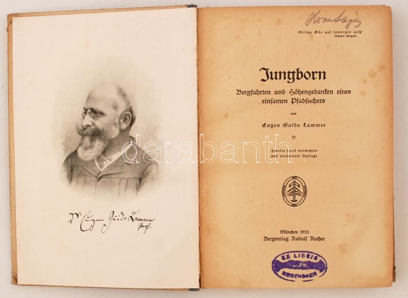 Lammer, Eugen Guido: Jungborn. Bergfahrten und Höhengedanken eines einsamen Pfadsuchers. München, 1923, Bergverlag Rudolf Rother. Kopott félvászon kötésben, jó állapotban.