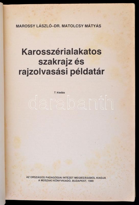 Marossy László - Matolcsy Mátyás: Karosszérialakatos szakrajz és rajzolvasási példatár. Bp., 1989, Műszaki Könyvkiadó. Mellékletekkel. Félvászon kötésben, a kötéstábla elválik.