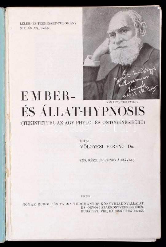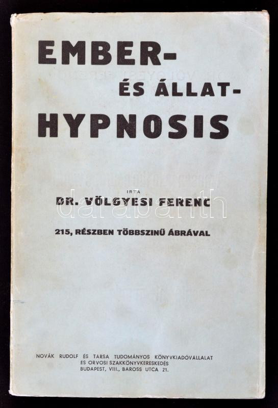 Dr. Völgyesi Ferenc: Ember- és állat-hypnosis. (Tekintettel az agy phylo- és ontogenesisére.) Lélek és természettudomány XIX-XX. sz. Bp., 1938, Novák Rudolf és Társa Tudományos Könyvkiadóvállalat és Orvosi Szakkönyvkereskedés. Kiadói papírkötésben, kicsit sérült fűzéssel. (1-48 p.)