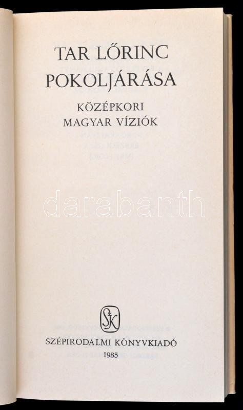 Tar Lőrinc pokoljárása. Középkori magyar víziók. Magyar Ritkaságok. Bp., 1985, Szépirodalmi Könyvkiadó. Kiadói kartonált papírkötés, kiadói papír védőborító. Jó állapotban.