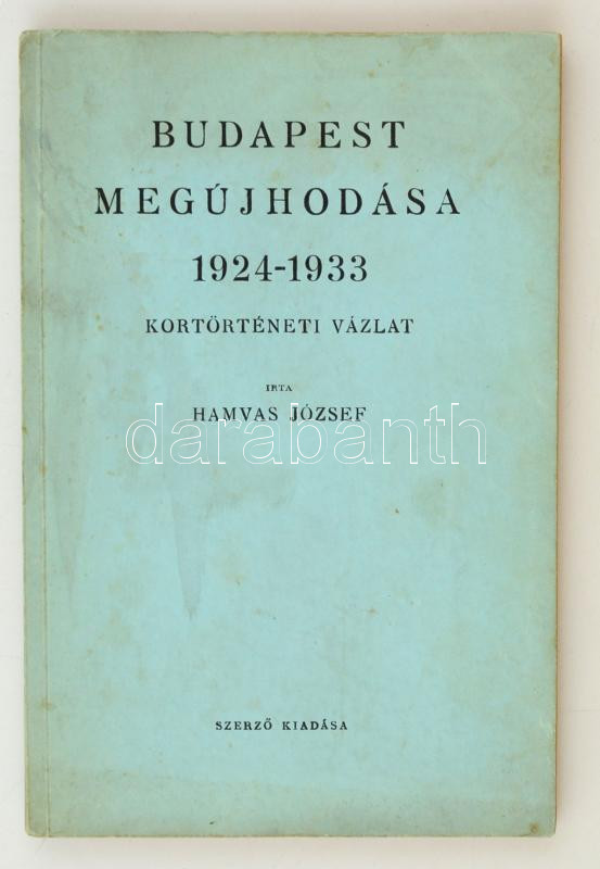 Leírás: Hamvas József: Budapest megújhodása 1924-1933. Kortörténeti vázlat. Bp., 1942, szerzői. Kicsit kopott papírkötésben, jó állapotban.