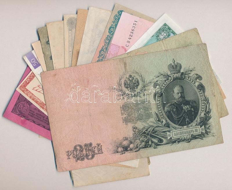 21db-os vegyes magyar és külföldi bankjegy és szükségpénz tétel, közte Orosz Birodalom, Németország / Weimari Köztársaság, Trinidad és Tobago, Fülöp-szigetek / Japán megszállás, valamint Gossam és Eferding városi szükségpénzek T:II--III- 21pcs of various banknotes and necessity notes , including Russian Empire, Germany / Weimar Republic, Trinidad and Tobago, Philippines / Japanese occupation, as well as necessity notes from Gossam and Eferding C:VF-VG