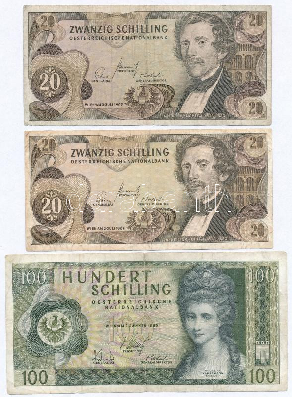 Leírás: Ausztria 1967. 20Sch (2x) + 1969. 100Sch T:III,III-