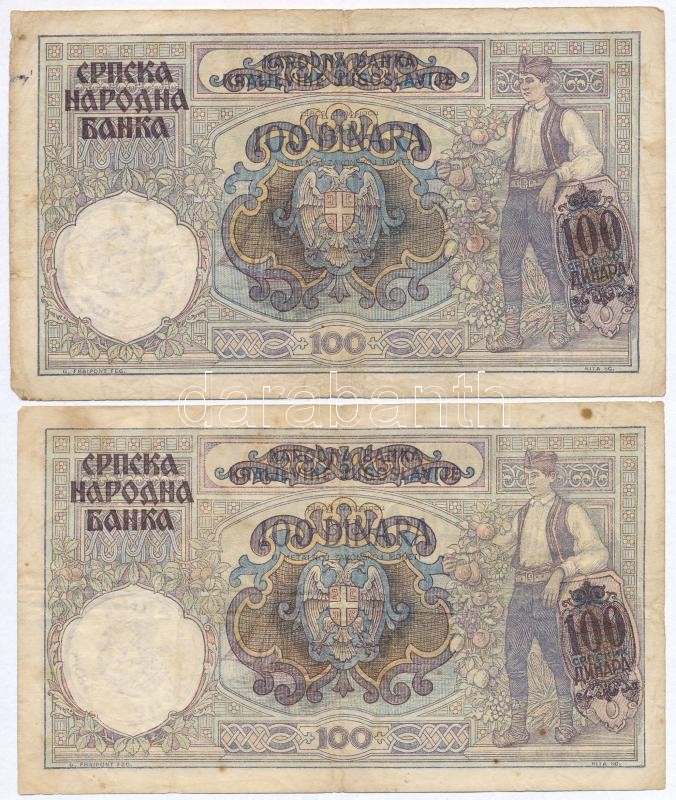Jugoszlávia 1929. 100D + Szerbia / Német megszállás 1941. 100D (2x) mi... https://www.darabanth.com/hu/287-Gyorsarveres/287.0/Numizmatika/Kulfoldi-bankjegyek~300013/Jugoszlavia-1929-100D-plus-Szerbia-Nemet-megszallas-1941-100D-2x-mindketto-hamis-felulbely~II1508733
