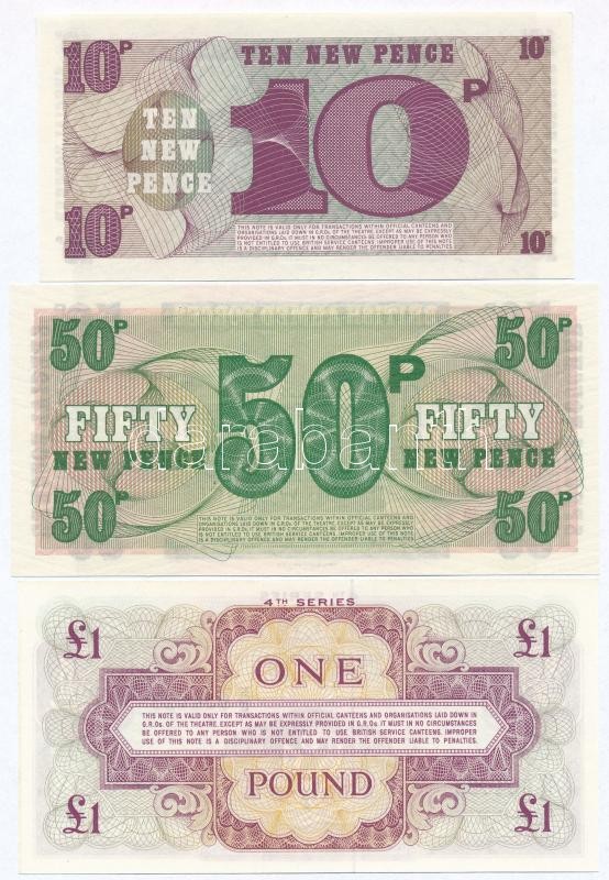 Great Britain / British Armed Forces 1962. 1 Pound "4th series" + 1972. 10 New Pence "6th series / 2nd issue" + 1972. 50 New Pence "6th series / 2nd issue" C:UNC