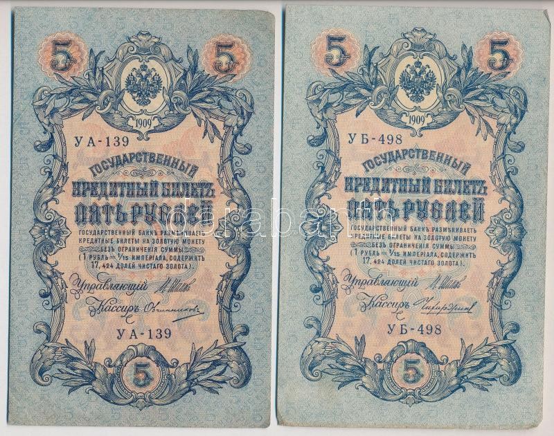 Orosz Birodalom 1909-1912. (1909) 10R Szign.: Konshin + 1912-1917 (190... https://www.darabanth.com/hu/287-Gyorsarveres/287.0/Numizmatika/Kulfoldi-bankjegyek~300013/Orosz-Birodalom-1909-1912-1909-10R-Szign-Konshin-plus-1912-1917-1905-3R-plus-1909-5R-2x-plus-10R-~II1503661