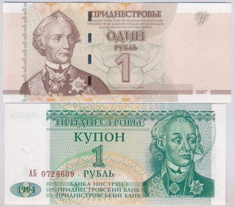 Transnistria 1994. 1 Ruble + 2... https://www.darabanth.com/hu/287-Gyorsarveres/287.0/Numizmatika/Kulfoldi-bankjegyek~300013/Transznisztria-1994-1R-plus-2007-1R-TI--Transnistria-1994-1-Ruble-plus-2007-1-Ruble-CUNC~II1507247