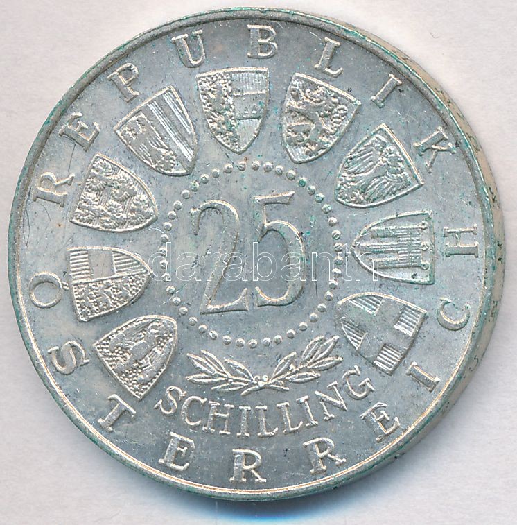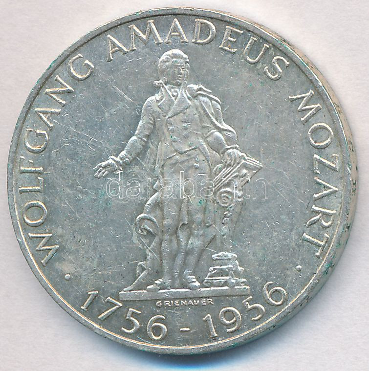 Austria 1956. 25 Schil... https://www.darabanth.com/hu/287-Gyorsarveres/287.0/Numizmatika/Kulfoldi-fem-es-ezustpenzek~300014/Ausztria-1956-25Sch-Ag-Mozart-T2--Austria-1956-25-Schilling-Ag-Mozart-CXF~II1503748