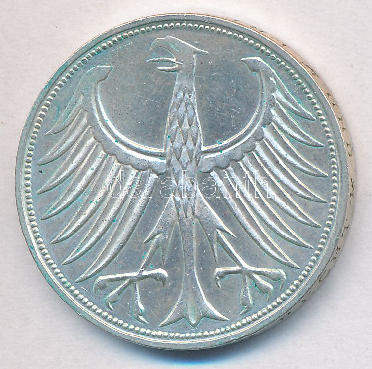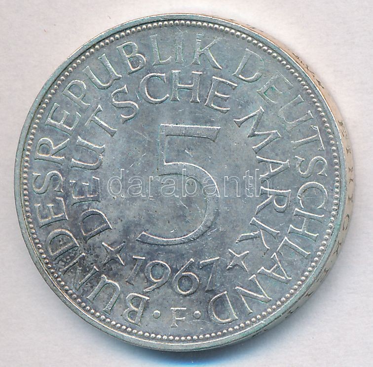 FRG 1967F 5 Mark Ag C:XF https://www.darabanth.com/hu/287-Gyorsarveres/287.0/Numizmatika/Kulfoldi-fem-es-ezustpenzek~300014/NSZK-1967F-5M-Ag-T2--FRG-1967F-5-Mark-Ag-CXF~II1506733