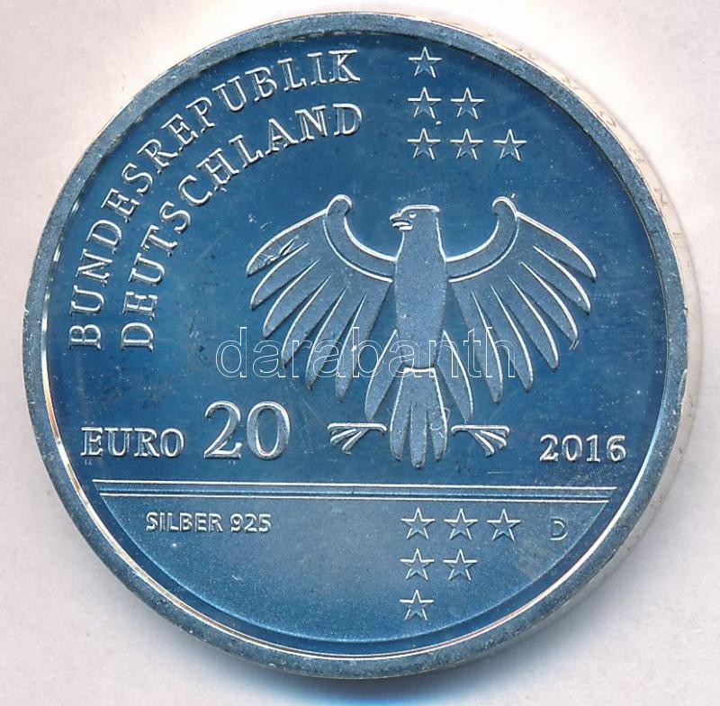 Germany 2016D 20 Euros Ag "200th Anniversary of the birth of Ernst Litfass" C:PP fingerprint