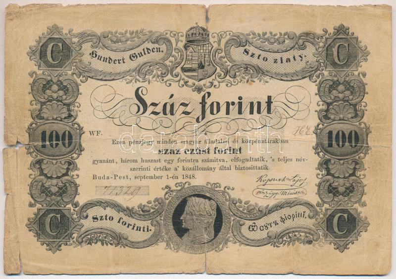 Leírás: 1848. 100Ft "Kossuth bankó" T:IV