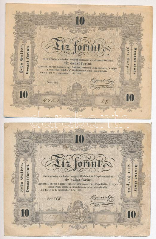 Leírás: 1848. 10Ft "Kossuth bankó" (2x) kétféle színárnyalat T:III,III-