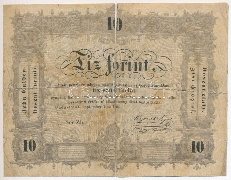 Leírás: 1848. 10Ft "Kossuth bankó" T:restaurált