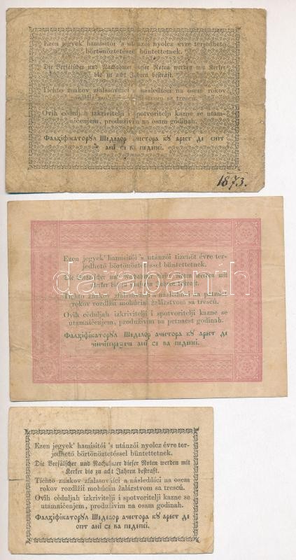Leírás: 1848. 1Ft "Kossuth bankó" + 5Ft "Kossuth bankó" vörösesbarna + 1849. 15kr "Kossuth bankó" T:III-,IV ly., fo.
