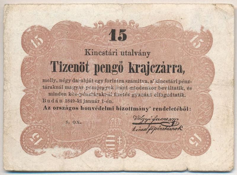 Leírás: 1849. 15kr "Kossuth bankó" T:III- tűly.
