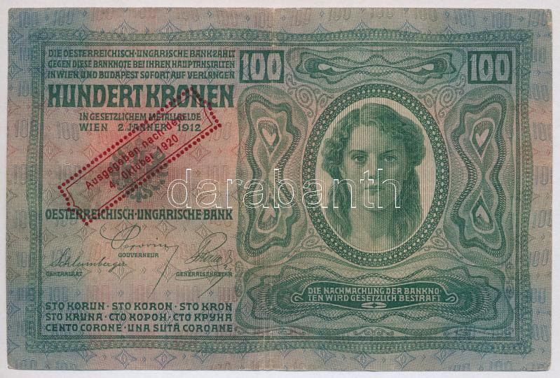 1912. 100K hamis "Ausgegeben nach dem 4. oktober 1920" felül... https://www.darabanth.com/hu/287-Gyorsarveres/287.0/Numizmatika/Magyar-bankjegyek~500002/1912-100K-hamis-Ausgegeben-nach-dem-4-oktober-1920-felulbelyegzessel-fake-overprint-TIII~II1507305