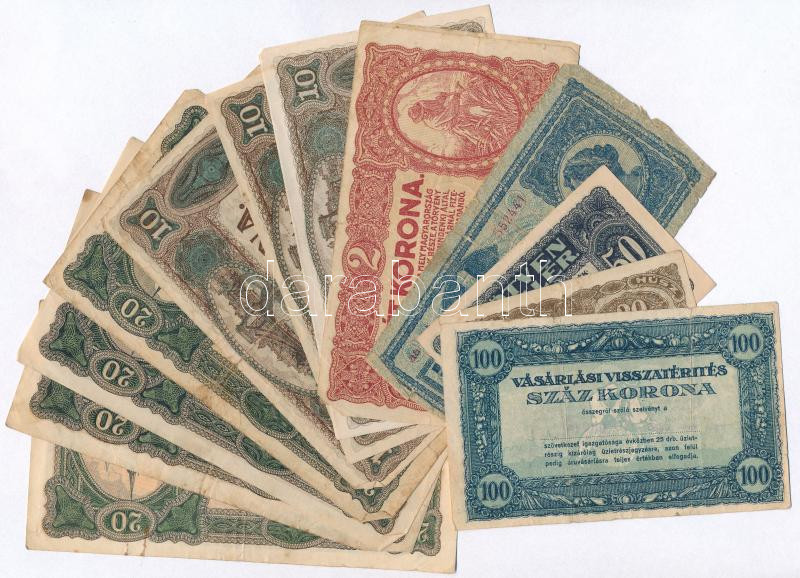 Leírás: 1920. 20f-20K (12x) + ~1920. "Vásárlási visszatérítés" 100K-ról, kitöltetlen T:III