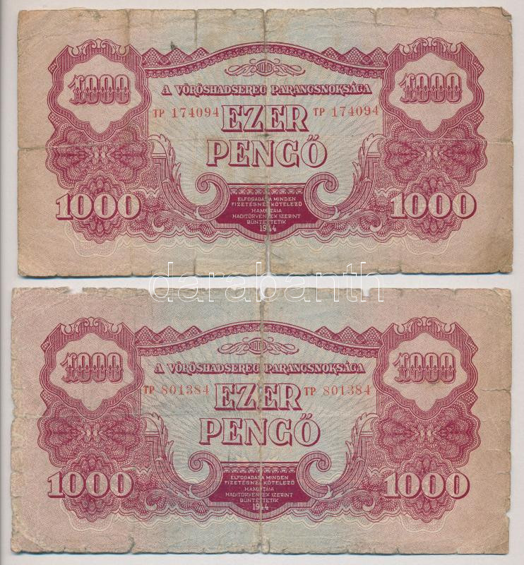 Leírás: 1944. 1000P "A Vöröshadsereg Parancsnoksága" (2x) T:IV ragasztás, fo., szakadás