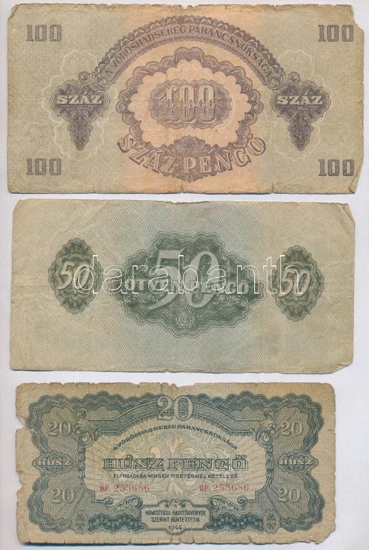 1944. 1P-100P (8x) T:III-IV https://www.darabanth.com/hu/287-Gyorsarveres/287.0/Numizmatika/Magyar-bankjegyek~500002/1944-1P-100P-8x-TIII-IV~II1508942