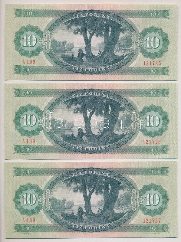 1975. 10Ft (3x) sorszámkövetők, nyomdai papírránccal T:I https://www.darabanth.com/hu/287-Gyorsarveres/287.0/Numizmatika/Magyar-bankjegyek~500002/1975-10Ft-3x-sorszamkovetok-nyomdai-papirranccal-TI~II1502223